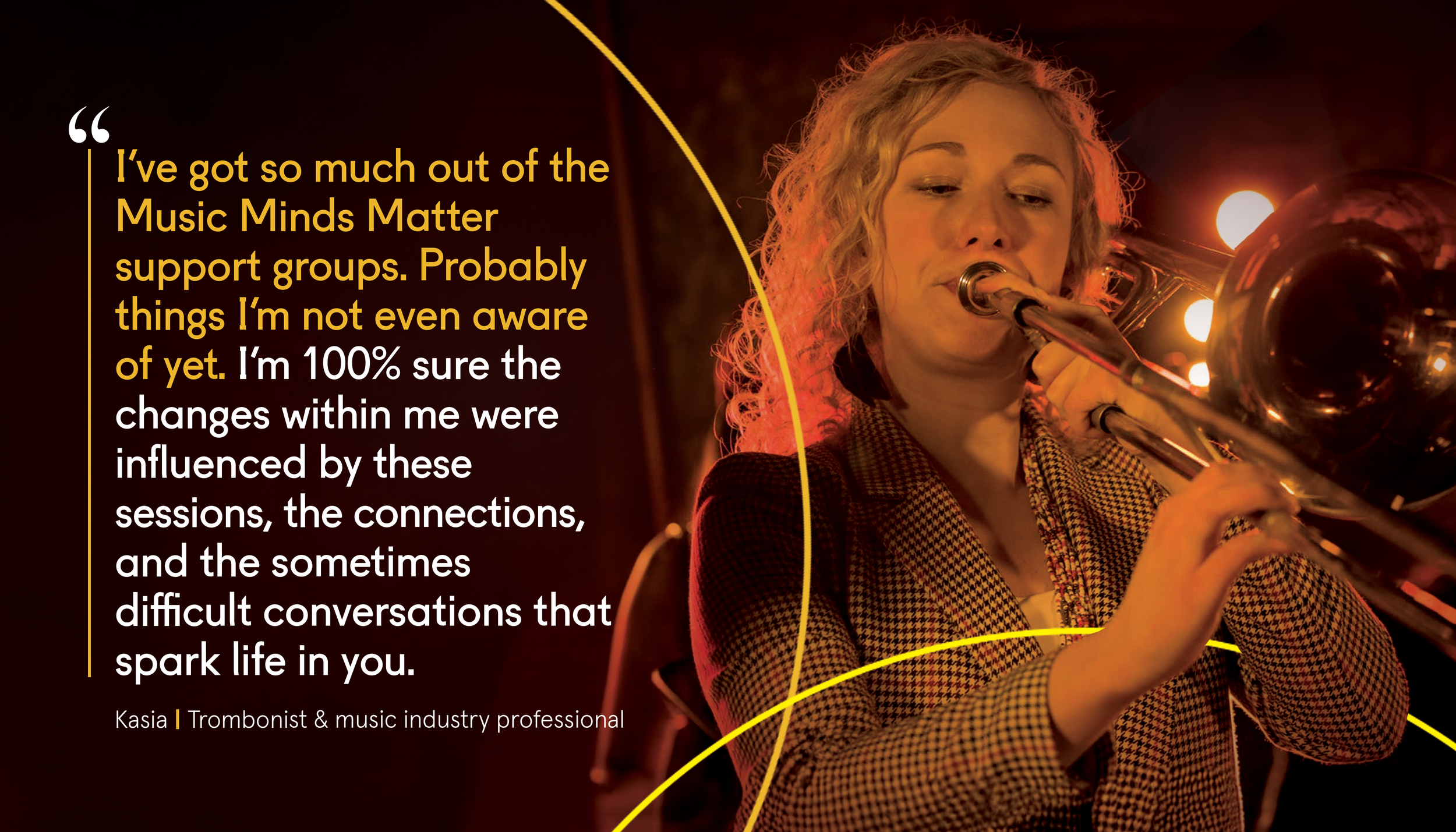 It was through her work as part of the wellbeing network at the Royal Albert Hall that Kasia discovered Music Minds Matter. After experiencing personal difficulties over a prolonged period, she began attending a peer support group, run by Music Minds Matter in partnership with Tonic Rider and designed specifically for those working in the music industry.